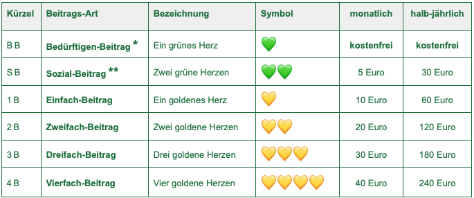 Die Art der Mitgliedschaft und die damit verbundene Beitragshöhe wählt jedes Mitglied selbst.